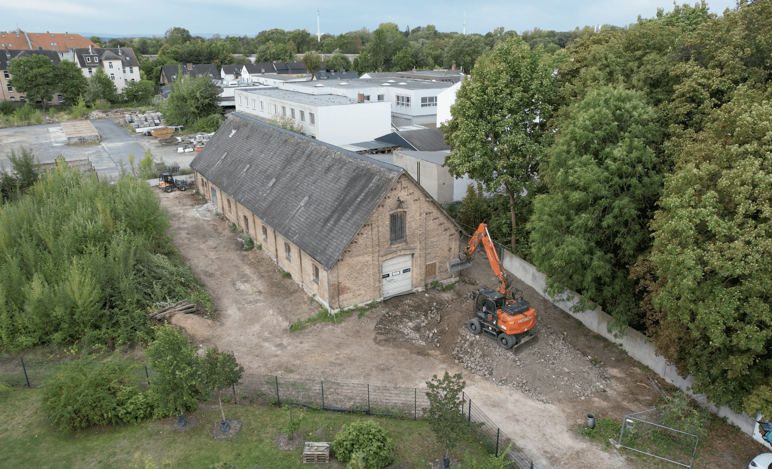 Umfeld wurde freigeräumt, Bewuchs entfernt und der unebene, verschmutzte Boden teilweise abgetragen, um eine saubere Grundlage für die Neugestaltung zu schaffen.